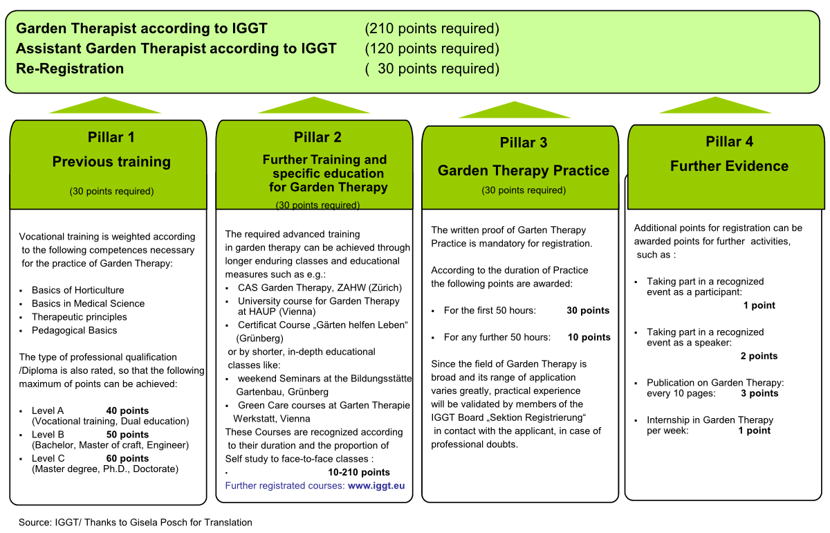 The IGGT has created the possibility for people working in the field of garden therapy to register with the IGGT according to their basic training, further training and practical experience: "Garden therapist (according to IGGT)".
